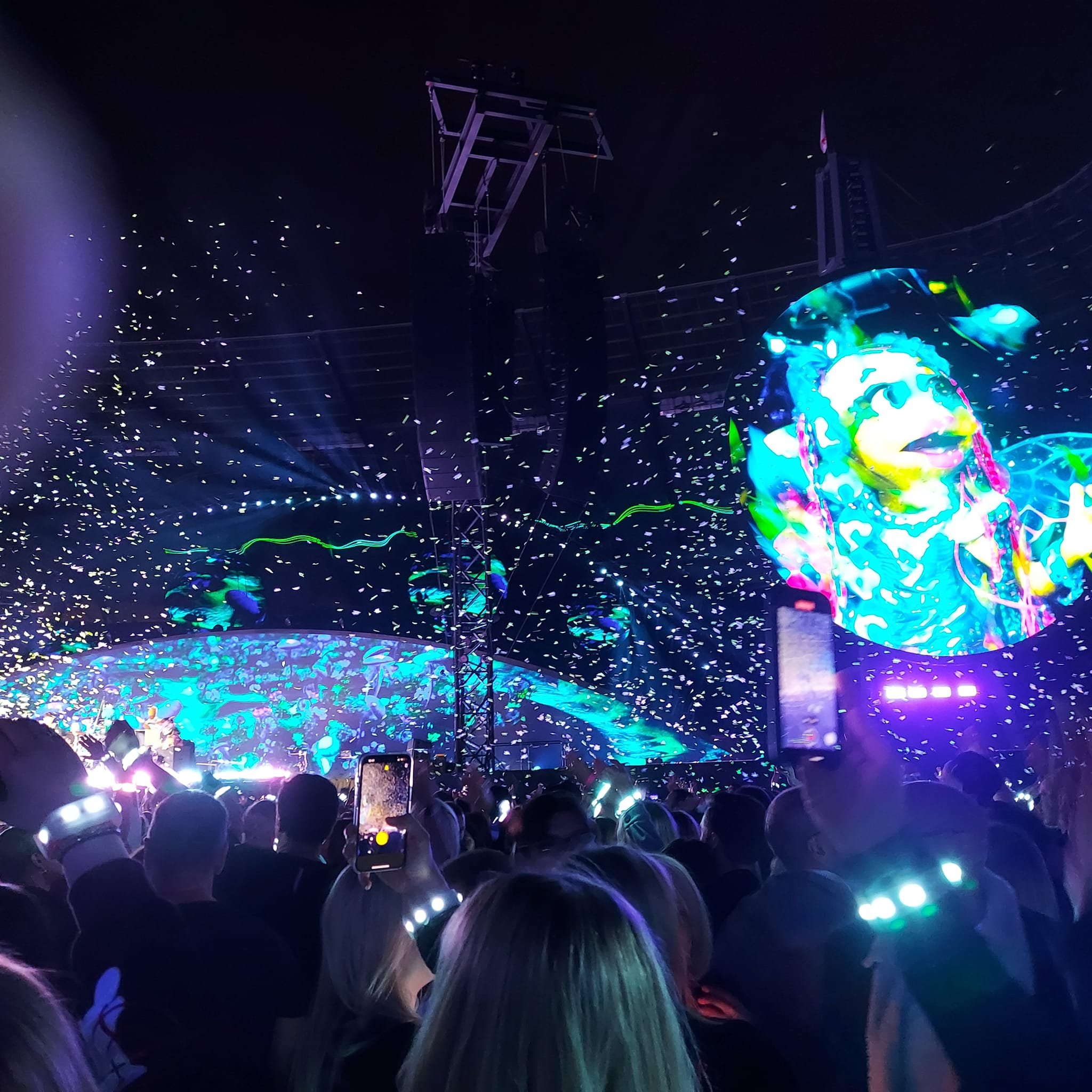 Artistic Director Chris Pirie has just returned home from performing in front of over 350,000 people as a puppeteer on Coldplay’s current World Tour; Music of the Spheres. He and five other puppeteers join the band onstage for Biutyful; the last song of the set. The puppeteers played a fictional band of alien musicians called The Weirdos, and had the joys of performing with a set of amazing puppets created in LA by Jim Henson Creature Shop. The 6-night UK leg of the tour visited Ethihad Stadium in Manchester, followed by Cardiff’s Principality Stadium.